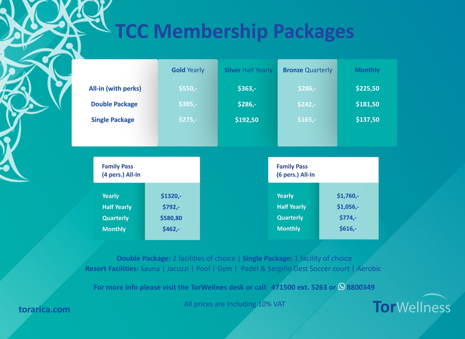 Entraînez-vous, détendez-vous et profitez toute l'année grâce à un abonnement TCC chez TorWellness. Que vous veniez seul, en couple ou en famille, vous trouverez toujours une formule adaptée à votre mode de vie.